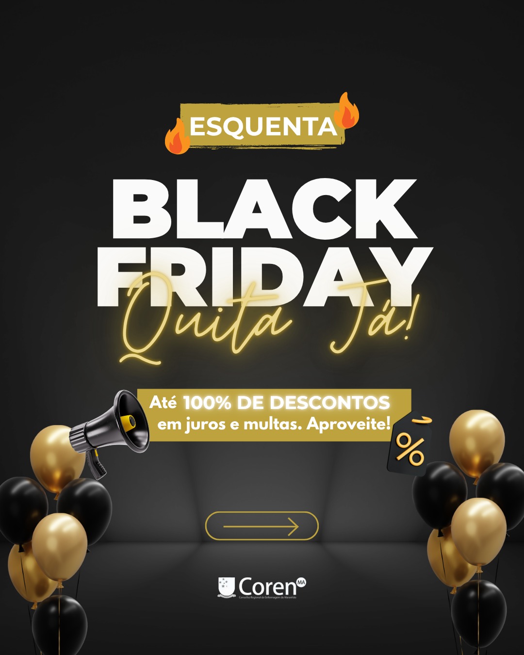 O Conselho Regional de Enfermagem do Maranhão (Coren-MA) lança, neste mês de novembro, a campanha Black Friday Coren-MA – Quita Já, oferecendo condições especiais para que os profissionais de enfermagem possam regularizar seus débitos com até 100% de desconto em juros e multas.
